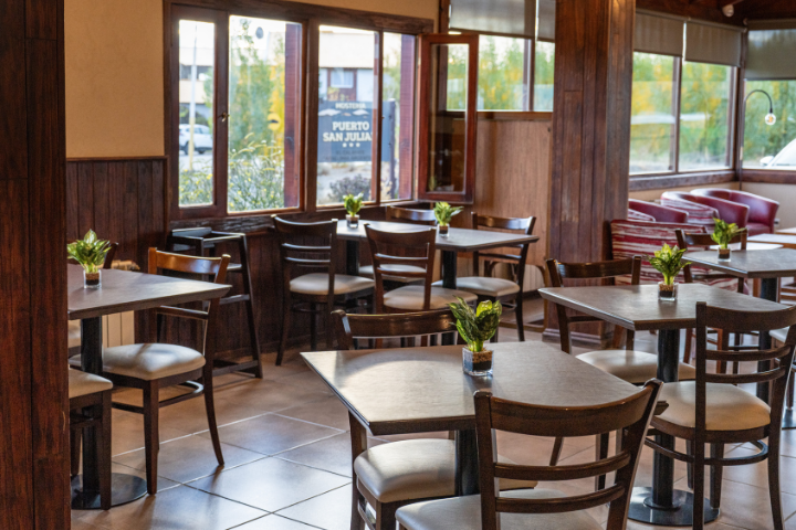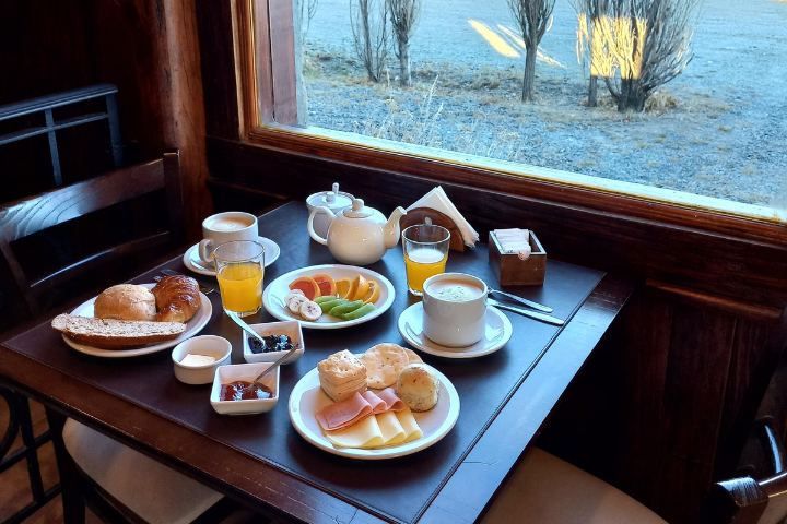 En el sector de la planta baja contamos con un cómodo y ameno salón para tomar el desayuno buffet de la casa. También se puede disfrutar de un jardín de invierno, con vista de los hermosos cielos patagónicos.