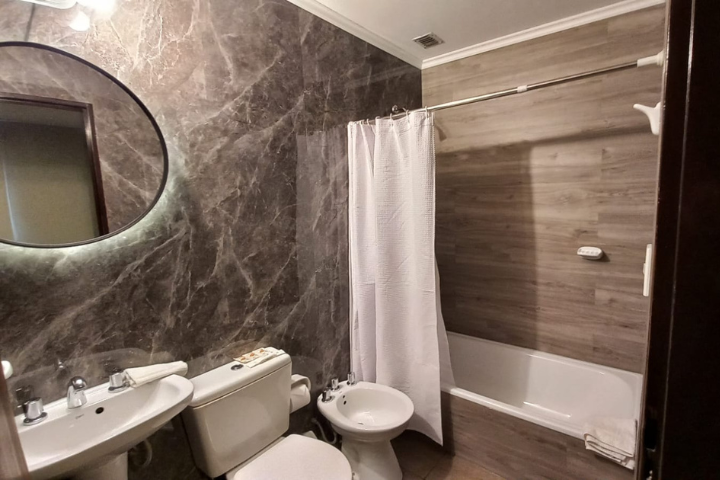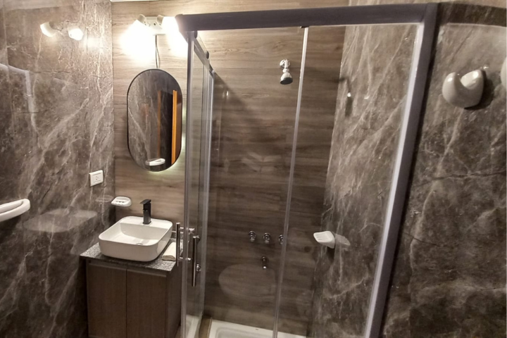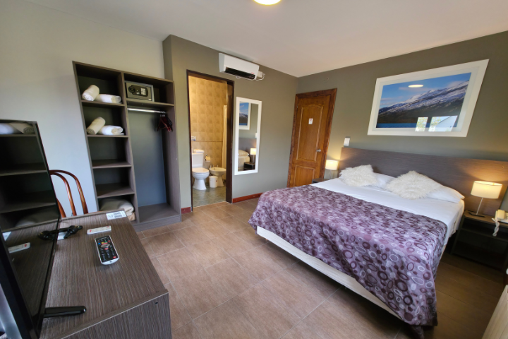 De diseño regional, orientado hacia el Lago Argentino, combina el encanto rustico de piedra patagónica con madera de paraíso y quebracho colorado, lo que hace que sea un ambiente confortable y de moderno diseño.